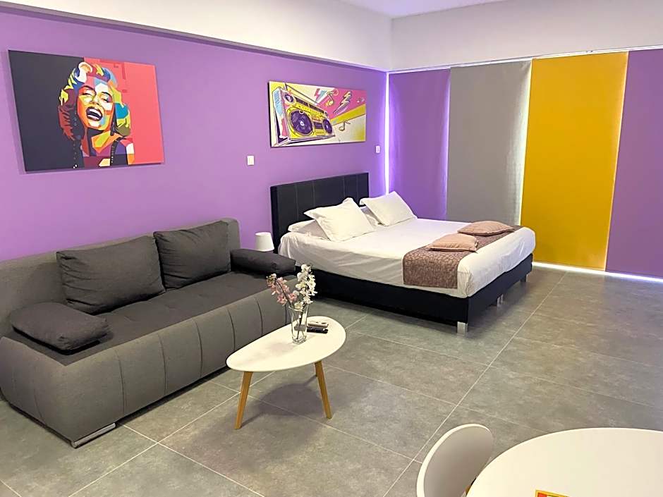 This suite is consisted of of a common space with 1 living room - bedroom and 1 bathroom with a shower and free toiletries. The well-fitted kitchenette features a refrigerator, a microwave, a tea and coffee maker and a toaster. This air-conditioned suite features a dining area, a flat-screen TV with streaming services a private entrance and a balcony. The unit offers 4 beds.